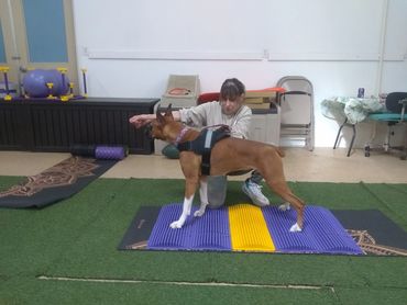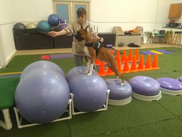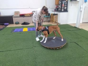 Cayenne works with Mary Ershen at FidoFit every week to keep her body toned. This training along with treadmill work at home maintains her muscular boxer physique. If interested, Mary's FidoFit is located in Dubuque, IA; her phone 563-582-5160.