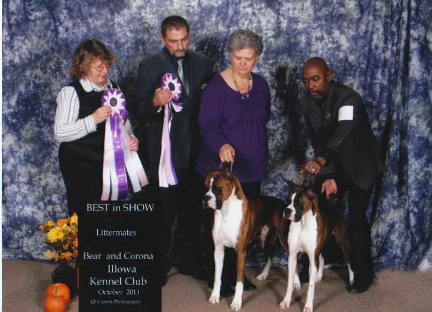 On 10/22/11 at the Illowa KC UKC Show in Davenport, IA, Corona and her littermate, Bear, each won