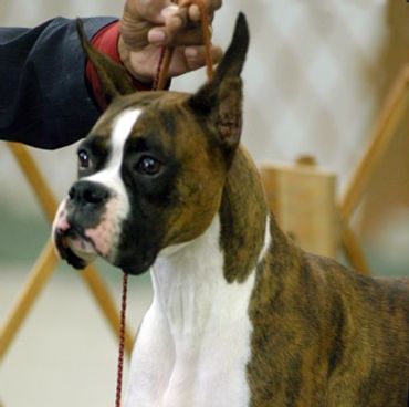 Corona has always been comfortable with the dog show scene. As can be seen above she is perfectly relaxed waiting to go in the show ring. Then, when she enters the ring, she is always at the 'top of her game', alert and ready for anything.